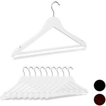 Set de 10 Perchas con Gancho Rotativo Relaxdays 44,5 cm Madera Blanca