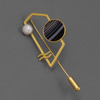 Broche Redondo de Piedra Natural y Plata