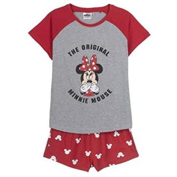 Mini Pijama Minnie Mouse: Corte Corta, Color Rojo y Gris
