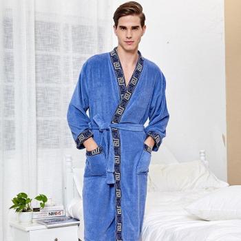 Albornoces de algodón para hombre, toallas gruesas de secado rápido para Hotel, pijamas de Jacquard 100% de algodón, bata de noche para Otoño e Invierno