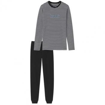 SCHIESSER Pijama azul claro / negro / blanco