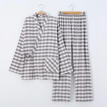 nuevos pijamas de para hombres estampado de hojas estilo moderno estilo de rejilla trajes de casa Chaqueta de punto con solapa ropa de dormir Conjunto de pijama de algodón puro