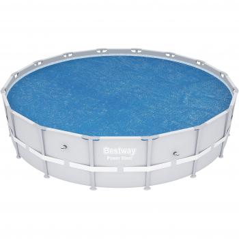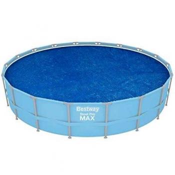 Piscina desmontable ovalada de acero con dimensiones 488x305x107 cm, equipada con depuradora de arena que procesa 3 785 litros/hora y escaleras integradas; su cobertor mantiene el agua limpia y protegida.