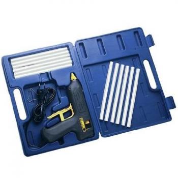 Pistola de pegamento caliente con temperatura máxima de 165 °C y control manual que evita goteos, ideal para detalles finos en proyectos DIY. Viene con tres barras de adhesivo multiuso de 7 mm, ligera y fácil de manejar.