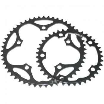 Plato Stronglight Type 130 S negro de 50 dientes con BCD 130 mm, diseñado para bicicletas de carretera y montaña. Su estructura de cinco brazos asegura ajuste seguro a engranajes Shimano 9/10 velocidades, ofreciendo durabilidad y rendimiento en cada pedalada.