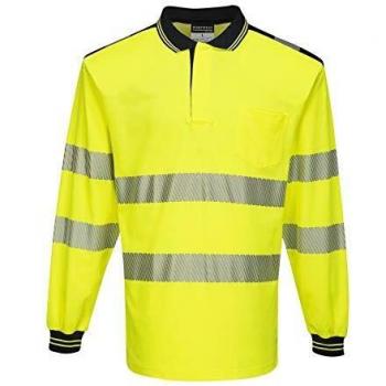 Polo de manga larga PW3 amarillo naranja flúor de diseño segmentado Portwest T184 XXL