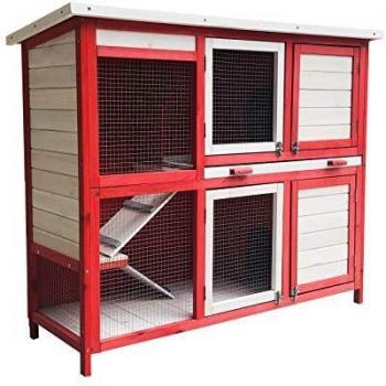 Conejera doble con acceso por escalera Rojo y Blanco