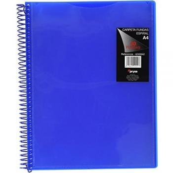 Pryse - Carpeta espiral 20 fundas A4 azul con bolsillo
