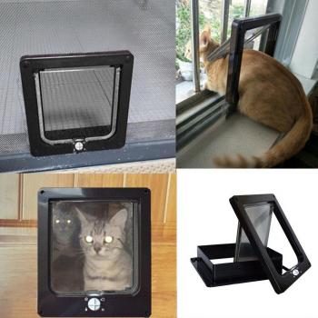 Interruptor giratorio de puerta de gato ABS, dispositivo con 4 vías de bloqueo de seguridad, control de puerta de perro, salidas y entradas de mascotas pequeñas, suministros para mascotas, , 1 ud.