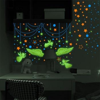 Pegatinas de pared fluorescentes con alas de hada y estrellas para sala de estar y dormitorio