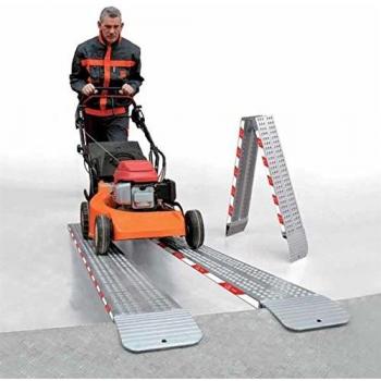 Rampa Gierre RRL250 de aluminio de 2,5 m y 20 cm de ancho, con superficie antideslizante y perfil ligero que permite desplegarla y plegarla sin esfuerzo, ideal para cargar vehículos con comodidad y seguridad.