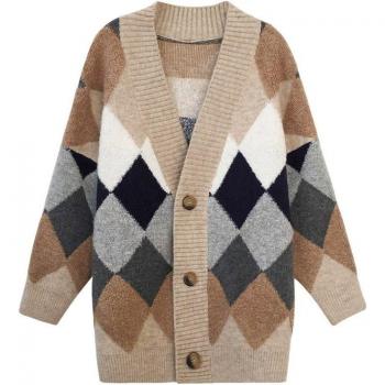 Otoño suéter de las mujeres con cuello en V Argyle cuadros de ropa solo Breasted Slim Rebecas elegantes damas blusas para niña Mori ropa de estilo
