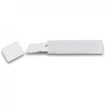 Cuchillas de acero gris con un ancho de 9 mm y longitud de 14,58 cm que proporcionan cortes limpios y precisos en trabajos de detalle; su filo afilado garantiza durabilidad y rendimiento constante para manualidades y artesanía fina.
