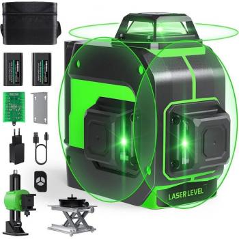 Nivel láser verde 360° con autonomía de 2 pilas recargables