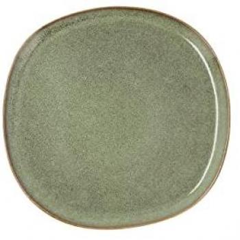 Plato Llano de Gres Bidasoa Ikonic 20,2x19,7cm Verde Brillo con Relieves Orgánicos y Borde Fino, Apto para Microondas, Decorado con Tintas Reactivas