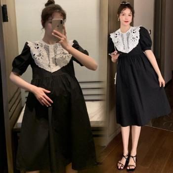 Ropa de verano de estilo coreano para mujeres embarazadas, ropa de manga corta con cuello redondo, retazos de algodón, línea A, Preppy