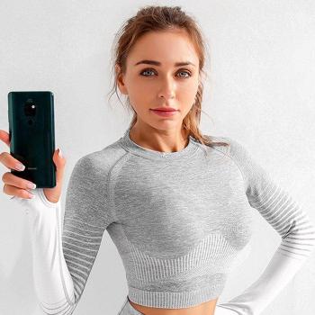 LANTECH mujeres entrenamiento ropa deportiva camisas de manga larga ajustado ajuste elástico Yoga Fitness recortado camisetas ejercicio entrenamiento gimnasio Activewear