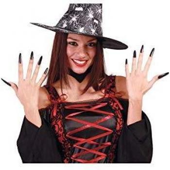 Uñas de bruja con adhesivo, color negro, 10 unidades