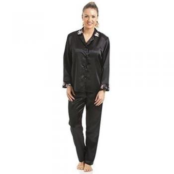 Camille Pijamas de Seda Negra con Motivo Floral