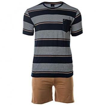 Pijamas Daniel Hechter para Hombres, Corto, Rayas, Azul Oscuro/marrón