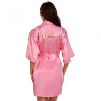Albornoz Kimono para Mujer Vlazom, Bata de Satin Novia Boda, Pijama Dama de Honor, Suave y Sexy, XL, Rosado
