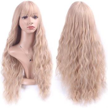 Peluca Cosplay TALESHE Negra Ondulada con Flequillo