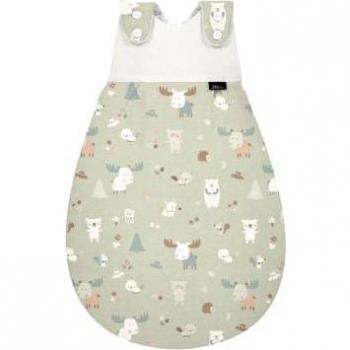Saco de dormir Alvi Baby‑Mäxchen® Original en tamaño 56/62, con estampado taupe suave y aislamiento 2,5 TOG para climas templados; compuesto por chaqueta, pantalón y funda protectora que garantizan libertad de movimiento y confort durante el sueño.
