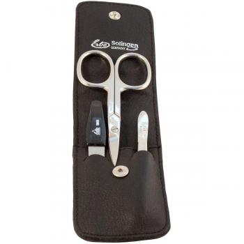 Estuche de Manicura ERBE Siena en Cuero Suave con 3 Piezas: Tijeras, Lima y Pinzas de Acero de Solingen