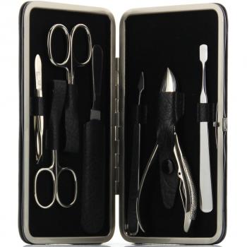Set de Manicura ERBE, 7 piezas, Estuche de Cuero Negro