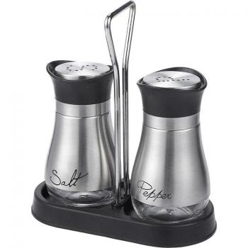 Set de saleros y pimenteros de acero inoxidable con soporte de 4 pulgadas y base de vidrio