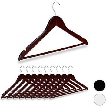 Relaxdays Set de 10 Perchas de Madera - Antideslizantes, 40 cm, Beige