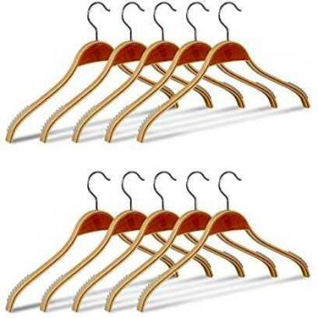 Perchas para ropa de madera, 10 piezas, gancho giratorio, 44,5 cm, color marrón
