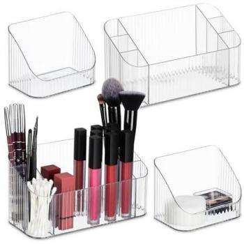 Organizador de Cosméticos en Set de 2, Plástico Transparente para Brochas y Labiales