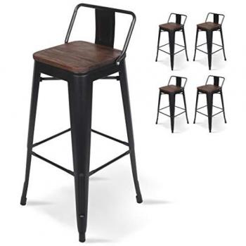 Set KOSMI Taburetes de Metal Negro Mate con Respaldo y Asiento en Madera Oscura – 4 unidades, 76 cm de altura