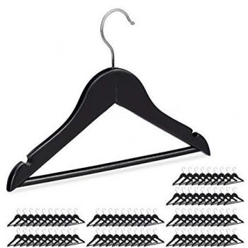 Set de 40 perchas de madera para niños y niñas con gancho giratorio, color negro