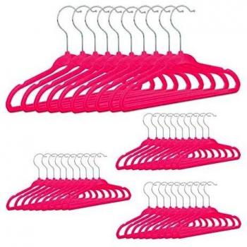 Juego de 40 Perchas Infantiles de Plástico Antideslizante con Funda de Terciopelo Suave, Rosa, 18 x 28 x 0,5 cm