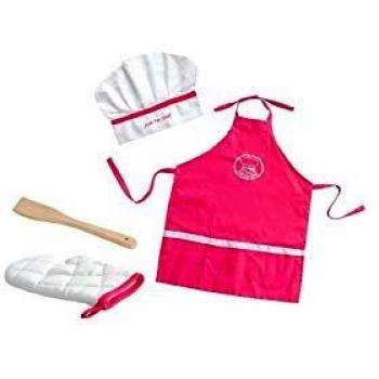 Set de chef con delantal rosa y gorro