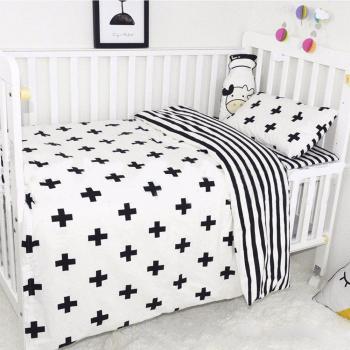 Juego de edredón para cuna de bebé, algodón, rayas blancas, incluye funda de almohada