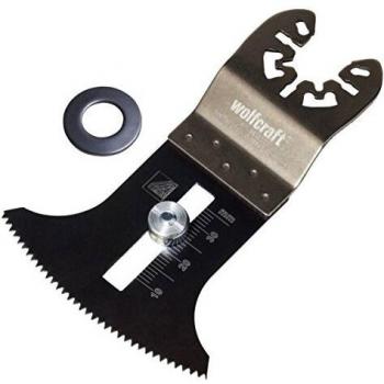 Hoja de sierra de inmersión Wolfcraft 3989000, fabricada en HCS con refuerzo de fibra de vidrio; su filo afilado permite cortes limpios en madera, placas de yeso y plásticos, ofreciendo rendimiento estable y larga vida útil.