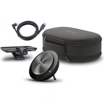 La Jabra PanaCast 50 combina una cámara de 13 MP con un campo de visión panorámico de 180°, cuatro altavoces potentes y ocho micrófonos para captar voces en salas medianas, ofreciendo video y audio nítidos sin necesidad de equipos adicionales.