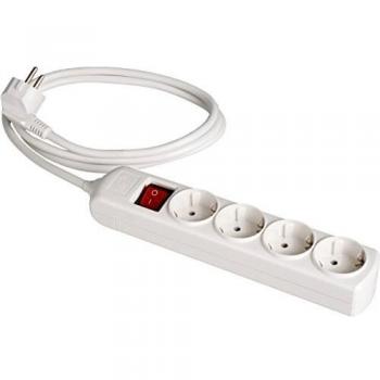Regleta con cuatro tomas bipolares y un interruptor luminoso que permite controlar el suministro en ambientes oscuros. Su potencia de 3680 W a 250 V garantiza la conexión segura de equipos de alto consumo sin sobrecargar el circuito.