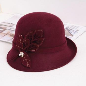 Sombrero Vintage de lana para mujer con lazo en cúpula rosa