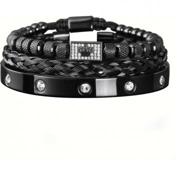 Brazalete negro con diseño de corona de circonia cúbica