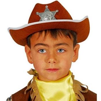 Este sombrero sheriff de fieltro negro combina tradición y estilo con su ala ancha, bordado en relieve y placa metálica que recuerda a la autoridad del viejo oeste, ideal para disfraces auténticos.