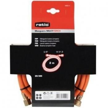 Soplete Ratio 4799H con llama regulable para butano‑propano, ideal para soldar o cortar metal y plástico; manguera R de 1,5 m flexible facilita maniobras precisas en espacios estrechos.