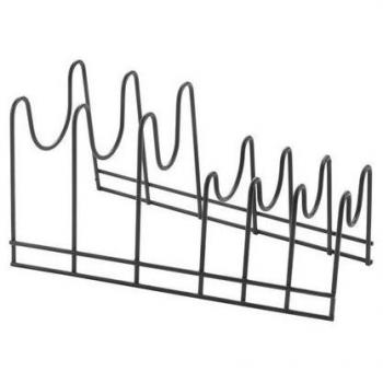 Organiza tu cocina con este soporte de metaltex en gris; sostiene seis tapas o bandejas con un diseño minimalista que maximiza el espacio sin sacrificar estabilidad ni estilo moderno.