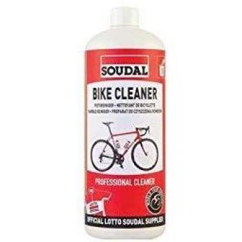 Kit Soudal con limpiador de alta potencia, spray versátil para todas las estaciones, toallitas absorbentes que eliminan la grasa y un bidón compacto con filtro integrado, todo en un paquete práctico y funcional para el cuidado total de tu bicicleta.