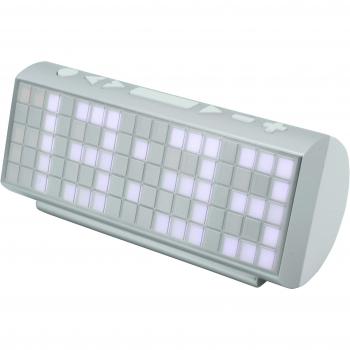Reloj digital blanco con pantalla LCD brillante que combina reloj, despertador y radio DAB+ FM en un solo dispositivo compacto. Su diseño elegante se adapta a cualquier mesa o dormitorio, ofreciendo doble alarma, temporizador, apagado automático y puerto USB para cargar tu móvil mientras disfrutas de tus emisoras favoritas.