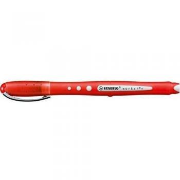 Bolígrafos de tinta líquida con punta fina de 0,5 mm y cuerpo plástico en colores vivos; el estuche incluye cuatro unidades (rojo, azul, verde y negro) para escribir con precisión y estilo sin derrames.