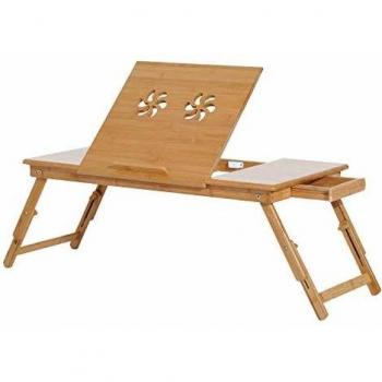 Mesa auxiliar para ordenador Homcom bambú natural 22-30x55x35 cm